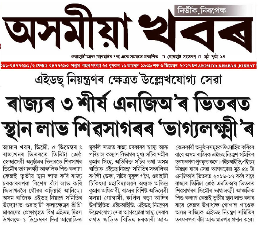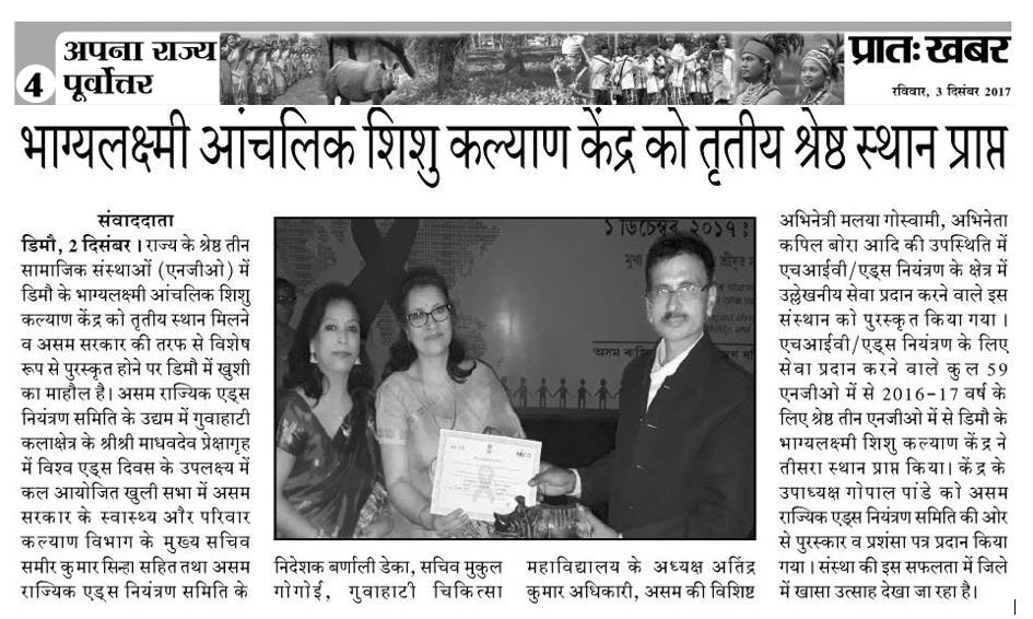 Paper cut, NGO secured 3rd position in Assam in the field of preventation and control of AIDS.